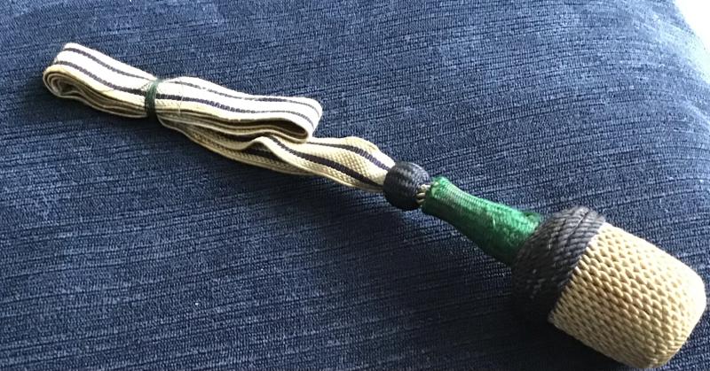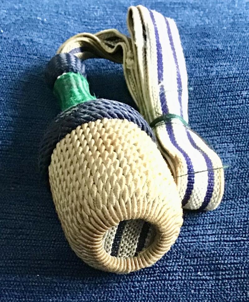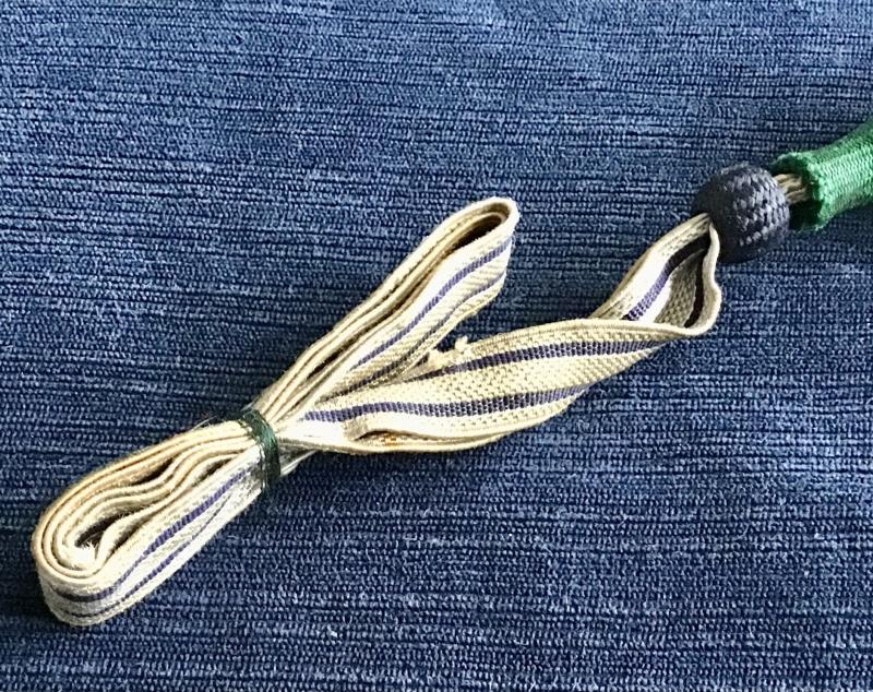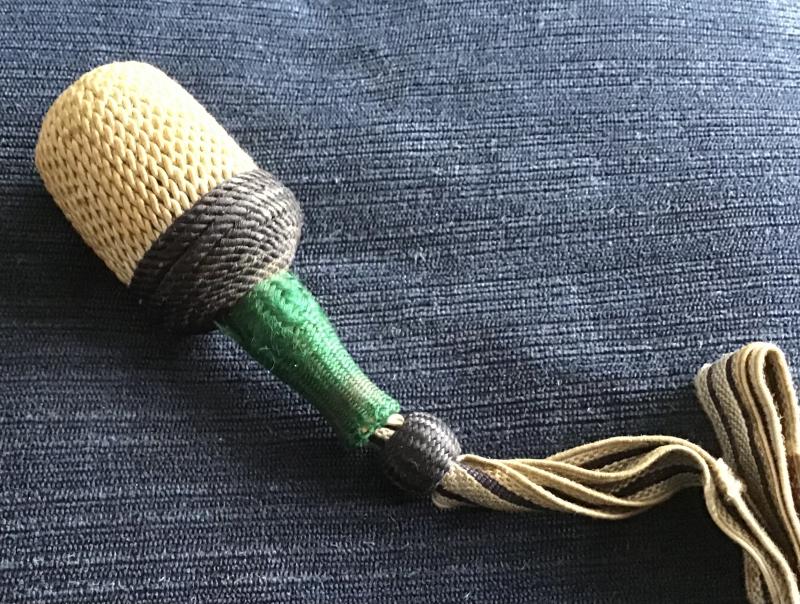 Identified as “General Service Enlisted” this portepee is in fine condition having only very minor “in wear” defects and age related grubbiness. Dark blue crown and slide, green stem and with a section of strap material as infil to the base of the acorn.