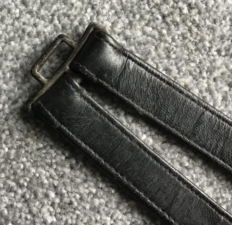 Whilst finding fabric hangers for the TENO Officer is difficult, finding the leather “work” hangers in decent condition is impossible. This set are in remarkable condition having no leather rot or other problems, and still remain stiff when held horizontally. All stitching is intact, and fittings retain most of the factory applied darkening. Lower spring clips are the pebbled variety and are a little stiff, but would free up perfectly with judicious application of a suitable lubricant.