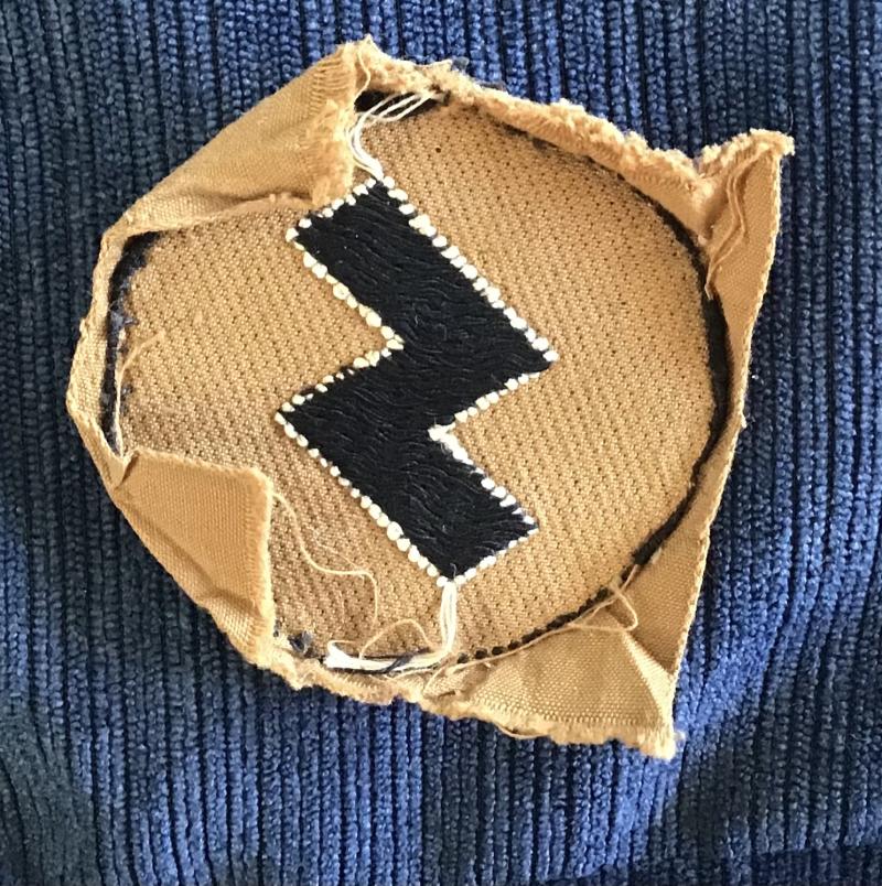 Deutsches Jungvolk Sleeve Badge. The white sigrune (Sowilo rune) on a black circular field identifies it as the badge for the Oberbann 5 district of the DJ, the junior section of the Hitler Youth.