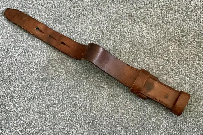 The brown leather attachment (Karabinerhalteriemen) was used for attaching and securing the rifle to the cavalry soldier, and was worn on the back between the bayonet and the breadbag.