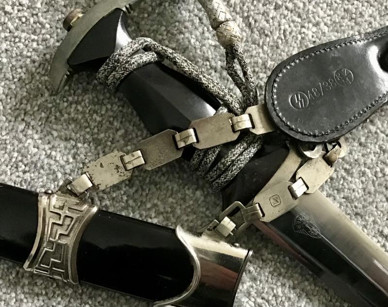 The very common scenario in which an M33 dagger has been period upgraded by the addition of a chained scabbard.