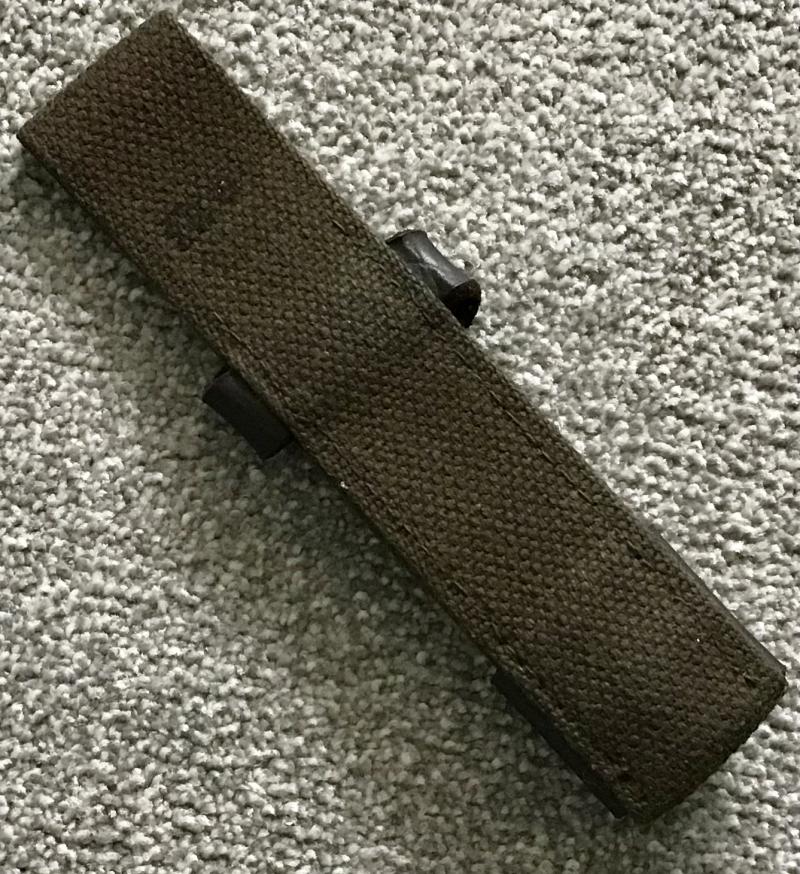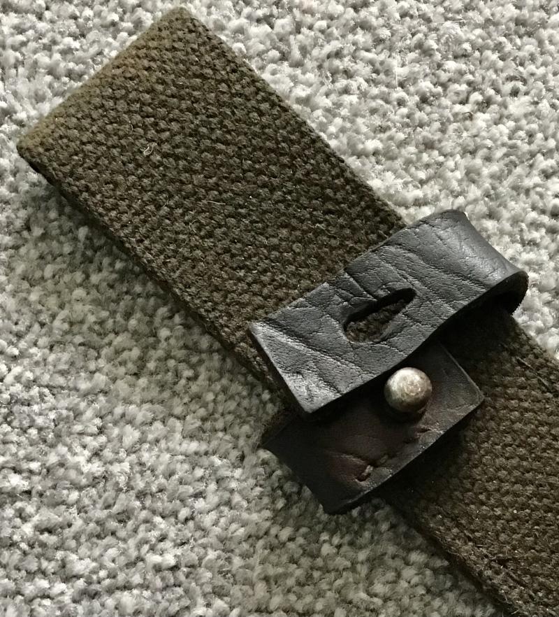 Unusual “skeleton” style frog which is webbing based but has a black leather ”shoe” with a circular lug hole, and a leather grip strap. Ideally suited to a shooting cutlass or similar.