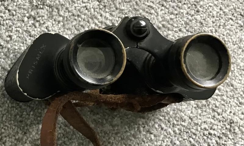 Marked “Prismex Paris” these binoculars are in good order having good optics and collimation. Complete with leather carrying strap.