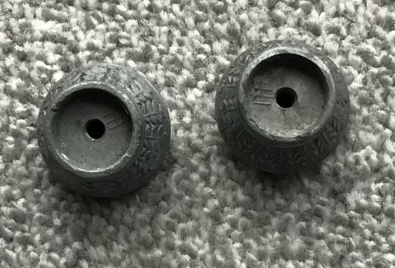 Well defined oak leaf and acorn depictions. Threaded, appear to be Hörster stamped to the inner face. Priced EACH