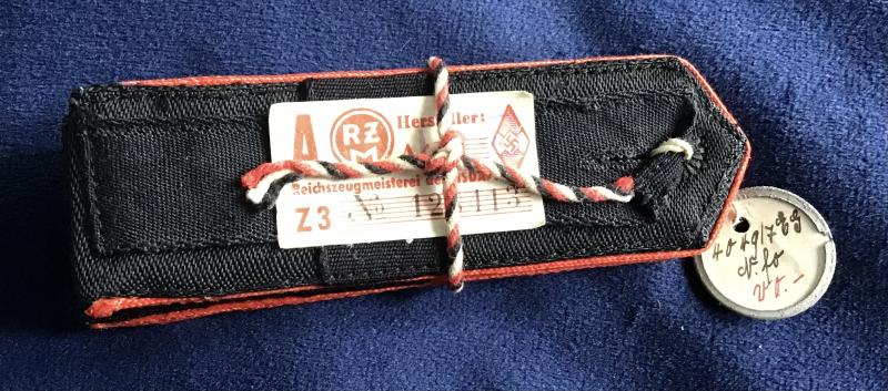A mint unissued pair still with RZM paper tag and manufacturers circular card tag. Intended for a “Kameradschaftsführer” who was attached to Bann 564 ( Bann Villach / ‘Gebiet Südost-Kärnten).