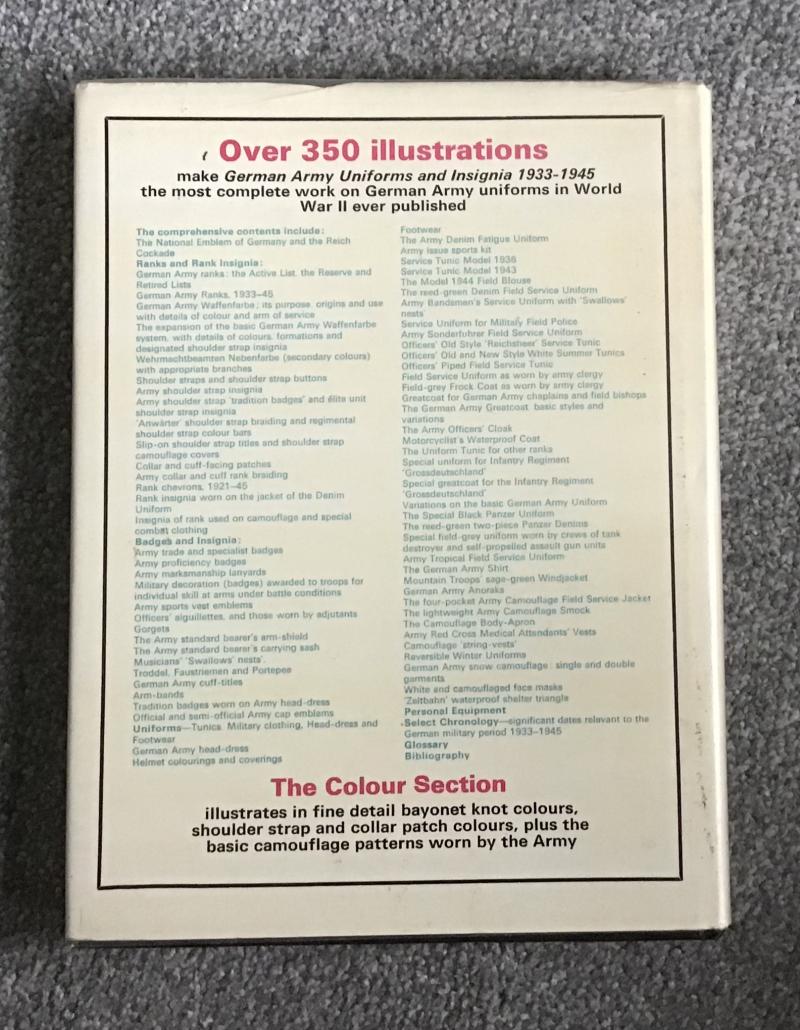An excellent primer for the field of Third Reich Army uniforms and accoutrements. Multiple illustrations and period photos with some in colour. In excellent condition with dust jacket.