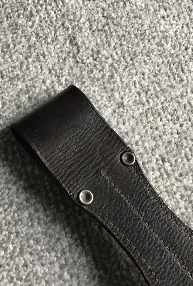 This example is in near mint condition and of typical four rivet construction. Exhibits the slot in the leather to receive the eyelet on the scabbard upper fitting once the ring had been removed.