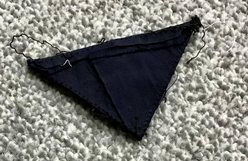 A third pattern badge worn as an overseas cap insignia or sleeve patch. Machine woven in flat silver or aluminium wire on a black cloth backing. Excellent condition with a few loose threads.