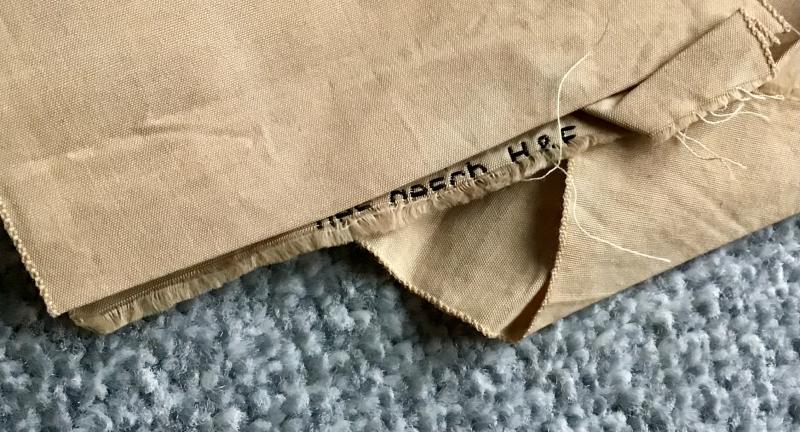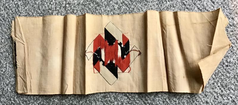 A period original, full length, tri-colour armband having the TENO emblem machine woven to the front face. The German patent mark “Ges.Gesch.”, and the makers initials “H & F” are similarly woven into one short edge. Linen band has some age darkening and creases, however emblem is perfect with no loose threads or tears.