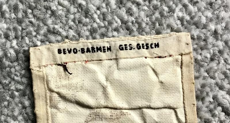 1933 Armscheibe patch authorised to be worn until 1937 after which only the TeNo eagle triangle patch was to be worn on the sleeve. Manufactured by Bevo Barmen (who became BEVO) and with the patent mark “Ges.Gesch.”