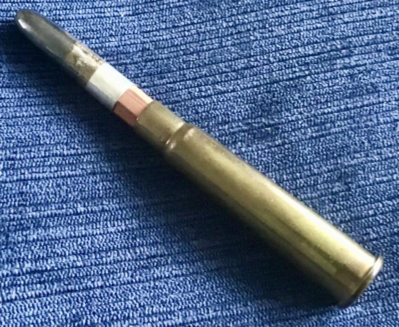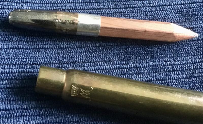 Officers issue having a Sterling Silver marked pencil holder. Cartridge case has the expected “Crown over M” stamping.