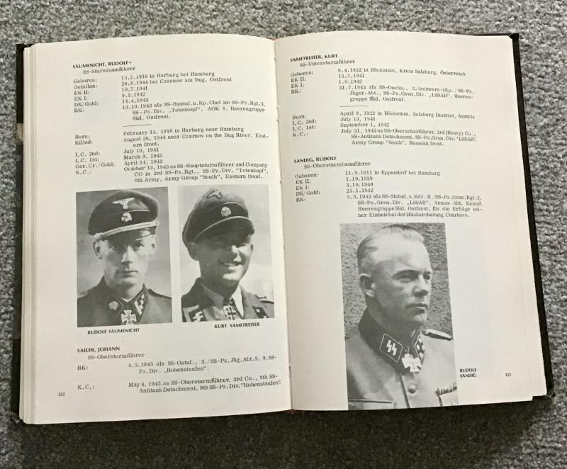In both German and English, this hardback book of some 480 pages by Jost Schneider was published in 1977 and is a documentary history of the Knights Cross Holders of the Waffen SS and Police 1940-1945. Well illustrated and a fascinating read for anyone interested in the personalities of the Reich.