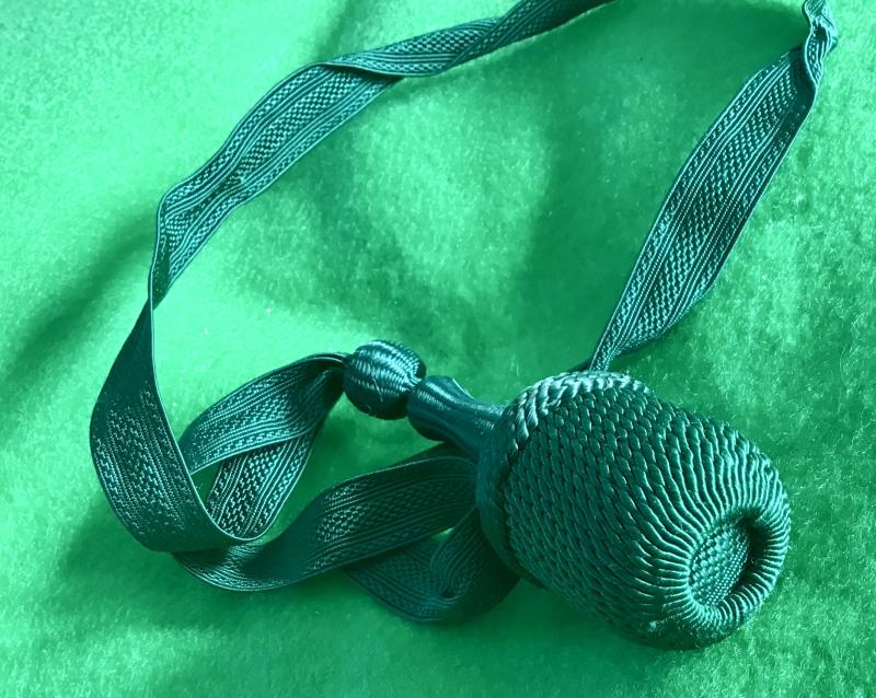 Super quality knot worn on the elegant cutlass belonging to members of the German Shooting Clubs throughout the Reich. Green strap, slide, stem, crown and acorn. In near mint condition.