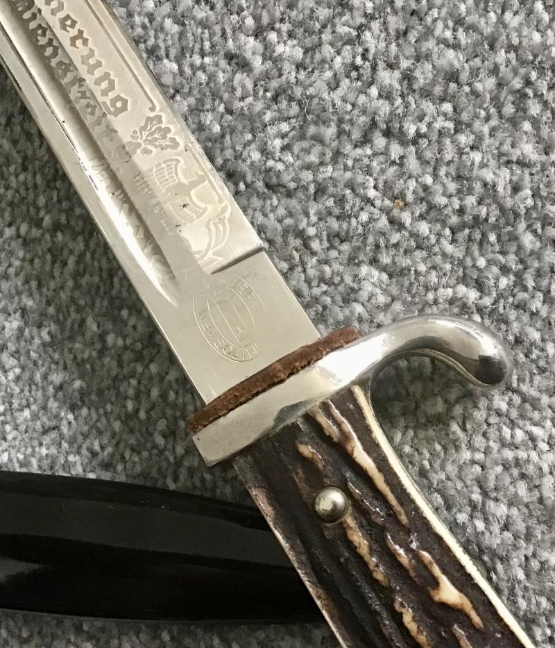 Third Reich Single Etch Dress Bayonet with Stag Grips-Höller