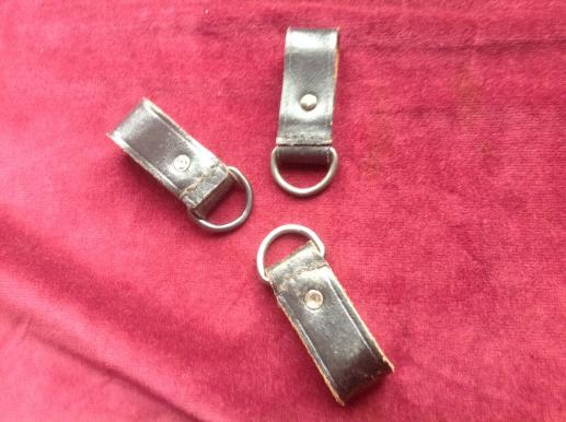 Nice set having the benefit of a leather “field upgrade” belt loop sewn in to the upper box clip. Deluxe fittings and leather tabs securing the straps to the box clip with rivets. Rivets also used to secure straps to buckles. Some minor fraying to the edges of the tress facings. Backings are the later war webbing option. read more